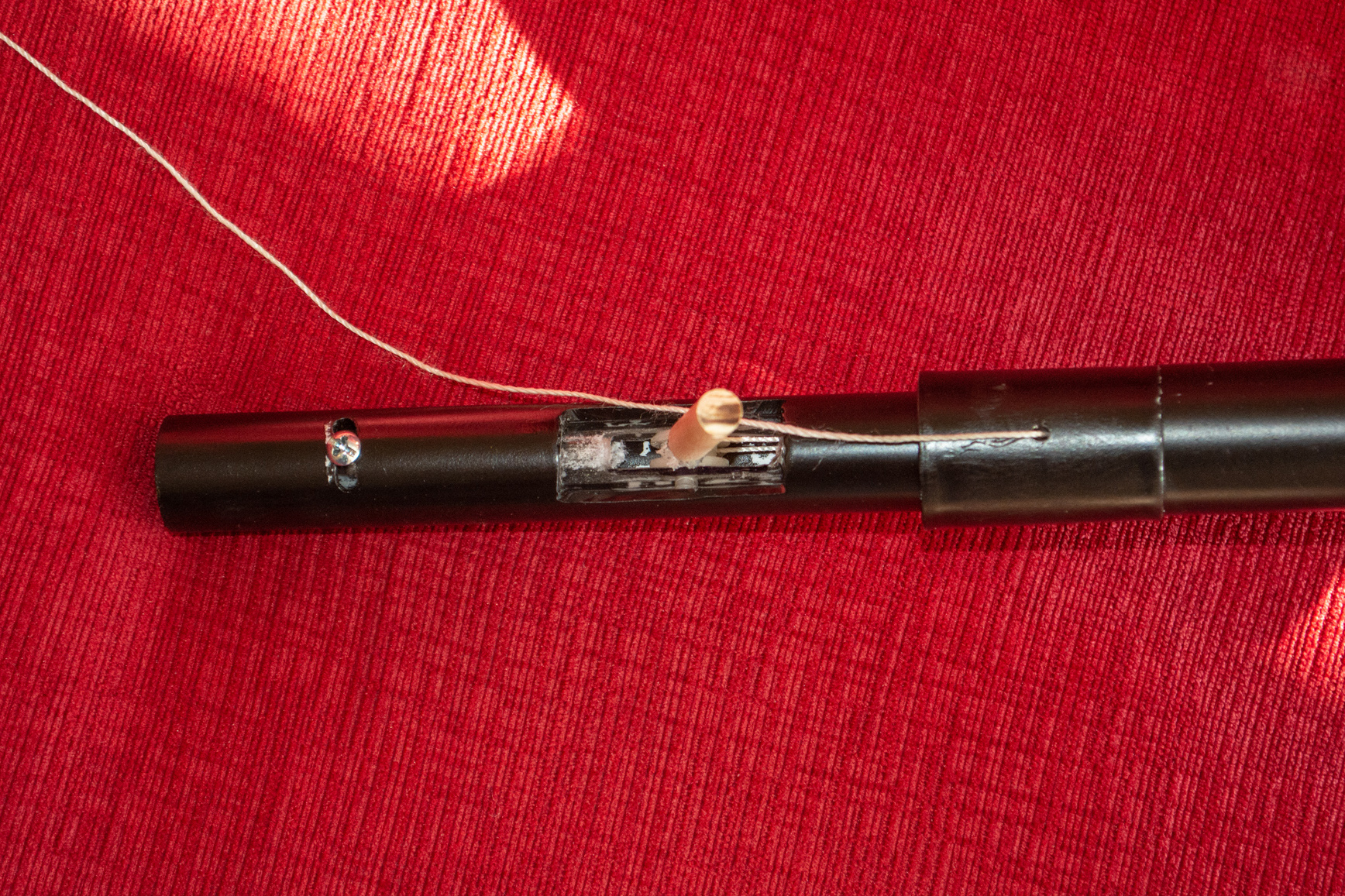 This provides an inner channel for the eye control string to ride in and a place to hotlgue the eye mount.