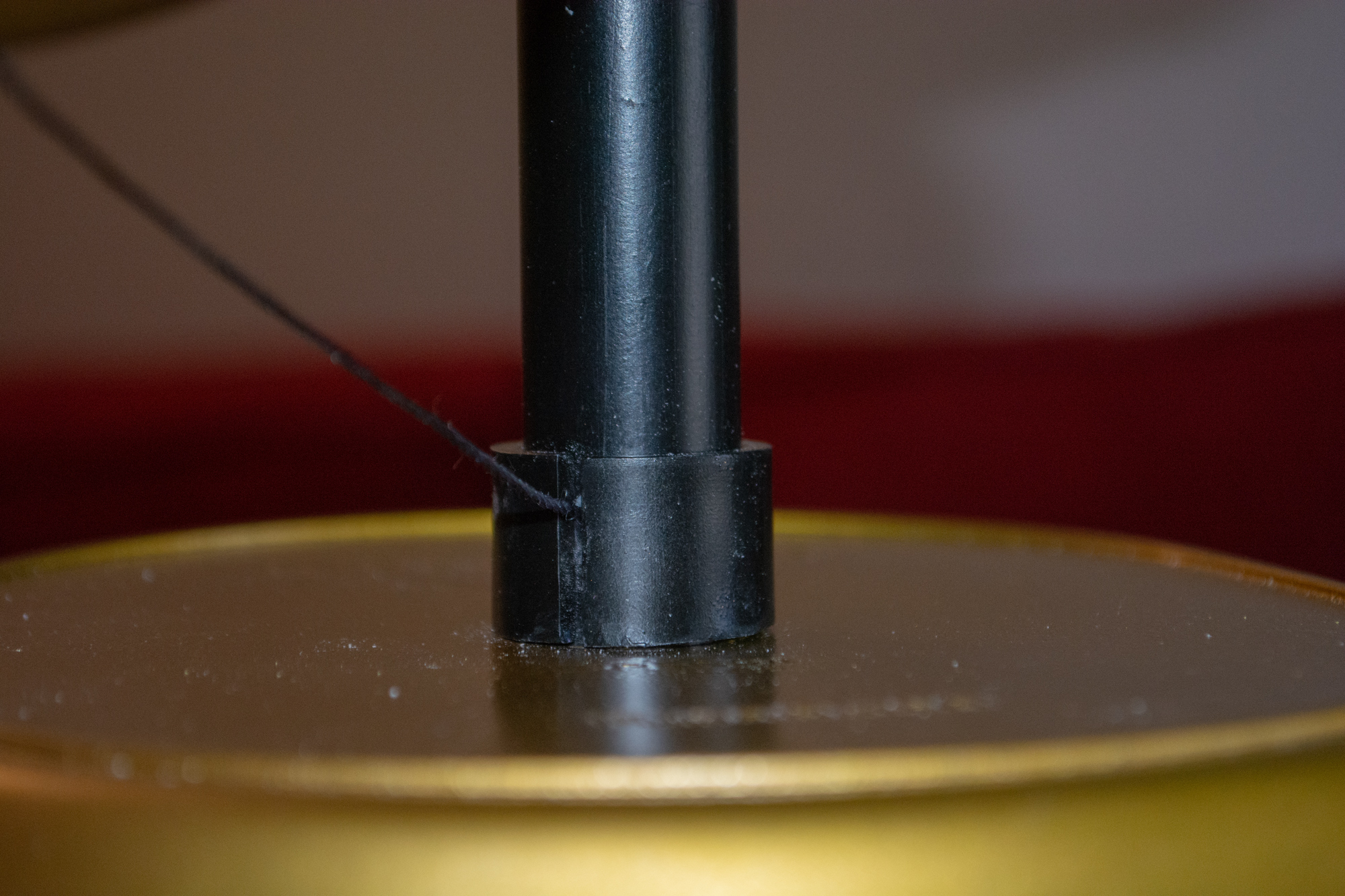 Fit a 3/4" 200 PSI PVC coupler into the socket of the top tray, connect the 15" long piece of pipe to it, and dry fit the rest of the floralier parts.