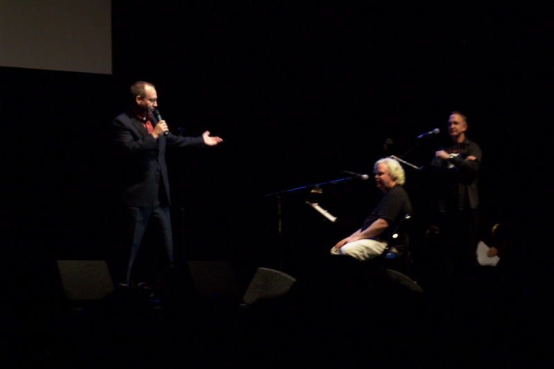 Mary Jo Pehl, Frank Conniff, Josh Weinstein, Trace Beaulieu, and Joel Hodgson were all introduced, Joel said a few words, and they all took their places on both sides of the screen.