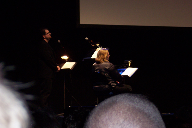 As people finished coming in, the opening act started, introduced by Mary Jo Pehl.