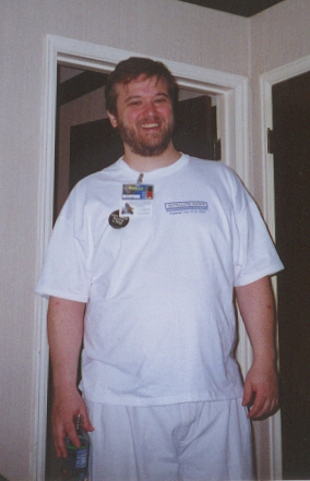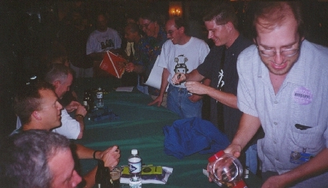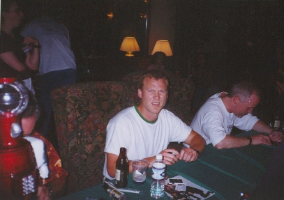 Servo's string broke after it ended so I headed up to the floor below the Sat News suite to Ken Haye's room. (The hotel is really built this way.)