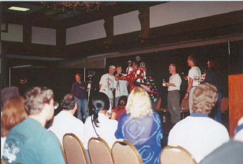 They called up all us bot builders so I went up on stage, completely forgetting I was holding my video camera.