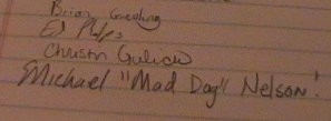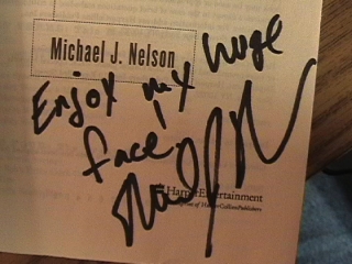 Here's the book I won from Mike and his signature. You can see him signing the book in the above photo. |