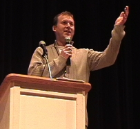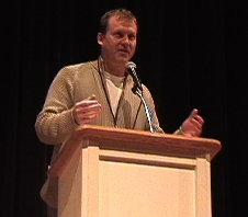 The event began at 1:00 PM in the Dana Auditorium. It pays off to be early because Mike entered the building through the front doors to an already growing population of msties. He posed for some photos and told us how Northwest Airlines had lost his luggage. All those attending the convention had to list their name on a sign in sheet for reasons unknown to me. When Mike came in, he jokingly signed his own name to the list. |