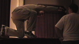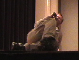 I think this segment is much funnier if you can see it for yourself - so I've compressed this into a tiny quicktime file and hosted it over on a craptastic geocities server. It's 726 k. (by the way - if someone wants to host this or other files I could make on their own superior web server - I'd be happy to put links up here because I know the geocities one is going to run out of transfer.) |